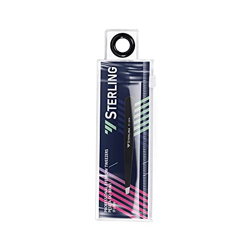 STERLING Pinzetta professionale per sopracciglia in acciaio inox, precisione e comfort nella regolazione delle sopracciglia, inclinata, nera e opaca, ST-12016