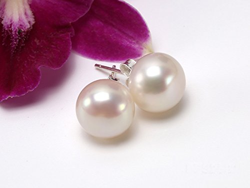 JYX Sterling Silver Bouchon d'oreille en perles d'eau douce en blanc naturel - qualité AAA