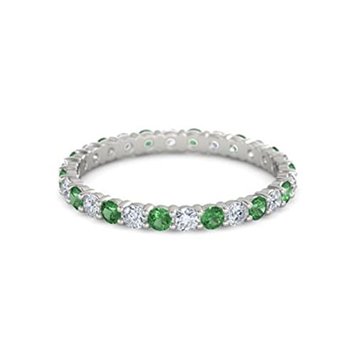 925 Sterling Silver Full Eternity Emerald With White Cz Round 2.50 MM Women Stacking Ring