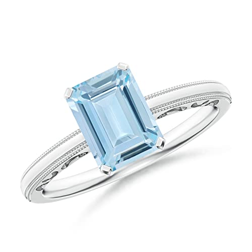 925 Sterling Silver 1.13 Ctw Octagon Acquamarina Gemstone Donne Anello Solitario di Nozze REGALO PER LEI (Argento sterling, 14)