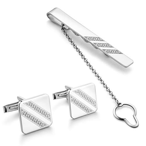 STERLL Uomo Gemelli e Fermacravatta Argento Sterling 925 Regalo Capo