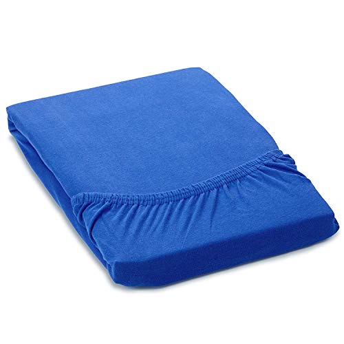 Gold Stern - Lenzuolo con angoli, in jersey di cotone elasticizzato, morbido e confortevole, lavabile a 60°, 100% cotone, Blu/media, 90-100 x 200 cm