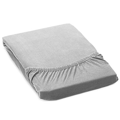 Gold Stern - Lenzuolo con angoli, in jersey di cotone elasticizzato, morbido e confortevole, lavabile a 60°, 100% cotone, argento, 90-100 x 200 cm