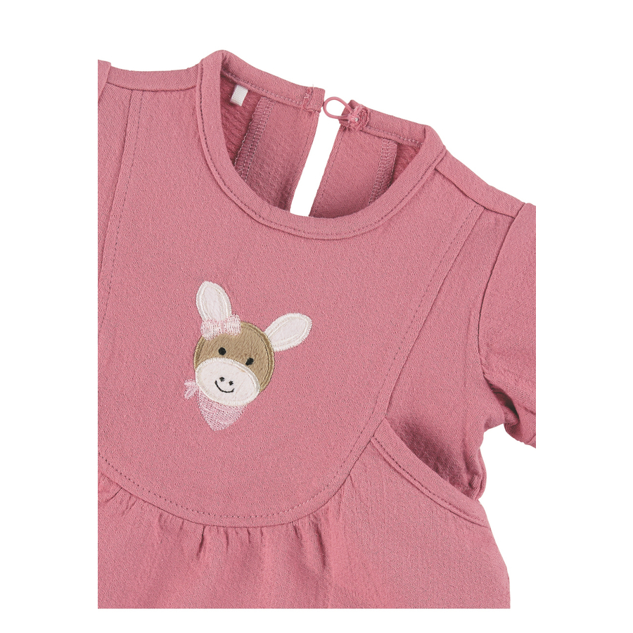 Dettagli prodotto: Abito da bebè Emmi in jersey Single con maniche a sbuffo e filato fiamma. Parte della gonna con volant Abbottonato sul retro e con applicazione Emmi Girl sul davanti Materiale e cura: Materiale: 100 % cotone (biologico) Lavabile a 30° C Non adatto all'asciugatrice Non lavare a secco Non candeggiare