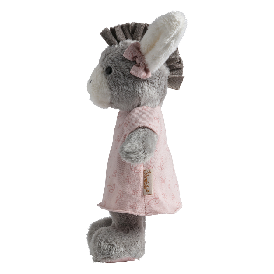 Dettagli del prodotto: Età: da 0 mesi Animale da gioco asinello Emmi Girl in morbido peluche con sonaglio indossa un vestito in morbido jersey con motivo floreale Dimensioni e peso: Misure (lunghezza x larghezza x altezza): 20 x 10 x 7 cm. Materiale e cura: Peluche: 100 % poliestere Jersey: 100 % cotone imbottitura: 100 % poliestere Ciclo di lavaggio normale 40°C Non è possibile utilizzare candeggina, non è possibile asciugare in asciugatrice, non stirare, non è possibile lavare a secco.
