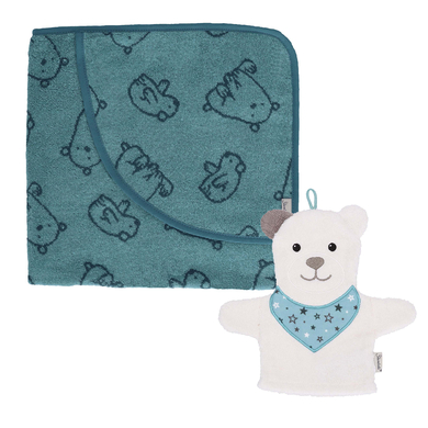 Dettagli prodotto Asciugamano da bagno con cappuccio: Telo da bagno con cappuccio GOTS con orso polare Elia in cotone assorbente (biologico). Con stampa orso polare all-over Protegge dalle correnti d'aria Dettagli prodotto Guanto per il lavaggio: Guanto per il lavaggio GOTS orso polare Elia in spugna Con il volto di un orso polare Particolarmente morbido e piacevole sulla pelle Divertente anche come pupazzo per le mani Materiale e cura Asciugamano da bagno con cappuccio: Materiale: 100% cotone (biologico) Lavabile fino a 60° C Asciugare con carico termico ridotto Stirare a calore moderato Non lavare a secco Materiale e cura Guanto di lavaggio: Materiale: 100 % cotone (organico) Lavabile fino a 60° C Asciugare con carico termico ridotto Stirare a calore moderato Non lavare a secco Dimensioni e peso Telo da bagno con cappuccio: Materiale: 100 x 100 cm Dimensioni e peso Guanto di lavaggio: Dimensioni: 22 x 24 x 0,5 cm