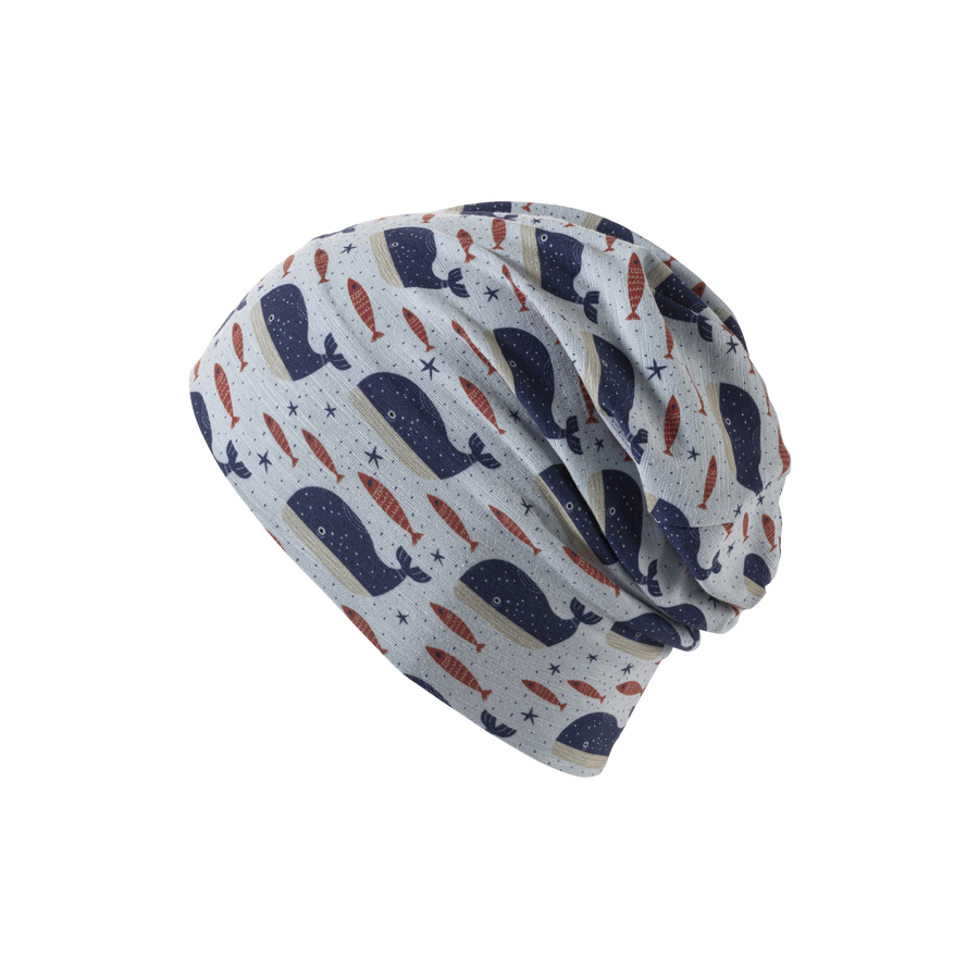 Dettagli prodotto: Berretto slouch in jersey di filato fiammato Stampato con balene Protezione UV: 50 Materiale e cura: Materiale: 95% cotone, 5% elastan Lavabile a 30° C Non adatto all'asciugatura in asciugatrice Non lavare a secco Non candeggiare