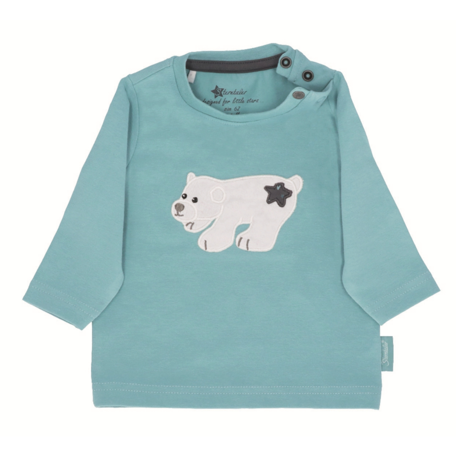 Dettagli del prodotto: Set due pezzi composto da camicia in jersey Single a tinta unita e pantaloni in jersey Single con stampa a stelle. Camicia con applicazione di orso e bottone sulla spalla Polsini di crescita in vita e polsini normali all'apertura delle gambe Materiale e cura: Materiale: 95 % cotone (organico), 5 % elastan. Lavabile a 40 °C Non adatto all'asciugatrice Non lavare a secco Non candeggiare