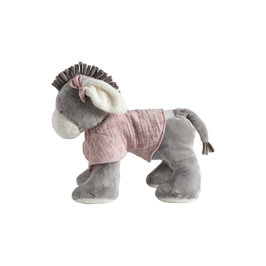 Dettagli del prodotto: Età: da 0 mesi Animale da gioco grande asino Emmi Girl in morbido peluche è decorato con un fiocco all'orecchio e indossa una camicia di mussola a fiori con colletto a carrè Dimensioni e peso: Misure (lunghezza x larghezza x altezza): 37 x 35 x 13 cm. Materiale e cura: Pile: 100 % poliestere mussola: 100 % cotone imbottitura: 100 % poliestere Ciclo di lavaggio normale 40°C Non è possibile utilizzare candeggina, non è possibile asciugare in asciugatrice, non stirare, non è possibile lavare a secco.