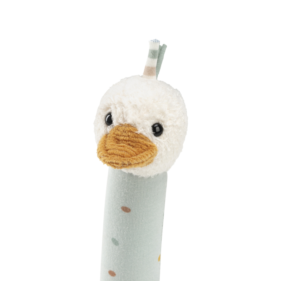Dettagli del prodotto: Anatra cigolante Edda in morbido pile e jersey Dimensioni e peso: Dimensioni (lunghezza x larghezza x altezza): 18 x 10 x 6 cm Materiale & cura: Materiale: pile: 100% poliestere;