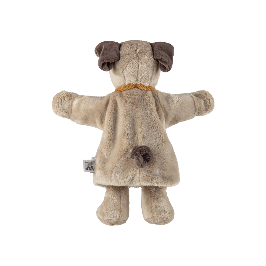 Dettagli del prodotto: Età: da 0 mesi Pupazzo a mano di cane in morbido peluche con orecchie pieghevoli e coda arricciata, simpatico collare e ricamo di zampe Dimensioni e peso: Dimensioni da assemblato (lunghezza x larghezza x altezza): 34 x 25 x 9 cm Peso: 0,06 kg Materiale e cura: Materiale: Pile: 100% poliestere;