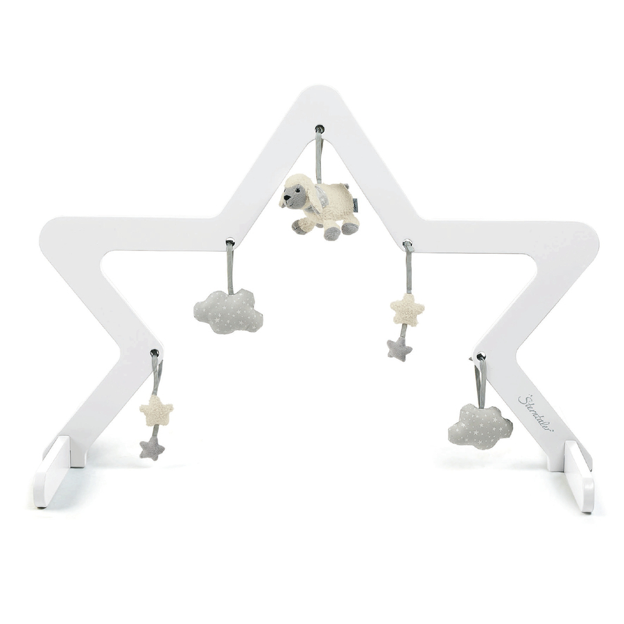 Palestrina in legno bianco da Sterntaler. Le diverse figure di gioco possono essere montate in diverse altezze e cambiate a vostro piacimento. Questo garantisce flessibilità e varietà. Dettagli del prodotto: Dimensioni (lunghezza x larghezza x altezza): 63 x 90 x 49 cm Materiale: 100 % legno pressato Colore: bianco Età: da 0 mesi Attenzione I giocattoli da appendere non sono inclusi nella consegna!