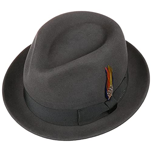 Stetson Cappello Wool & Cashmere Player Uomo - Feltro di Lana Fedora da Musicista con Nastro in Grosgrain Autunno/Inverno - M (56-57 cm) Antracite