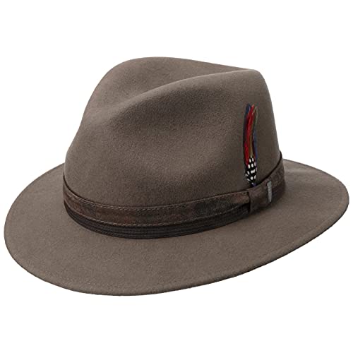 Stetson Cappello in Lana Landell Traveller Uomo - Outdoor di Feltro da Pioggia con Fodera, Fascia Pelle Autunno/Inverno - XL (60-61 cm) Kaki