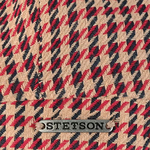 Stetson Coppola Hatteras Coloured Houndstooth Uomo - Made in The EU Berretto Lino Newsboy Cotton cap con Visiera, Fodera, Fodera Primavera/Estate - 58 cm Beige-Rosso