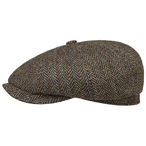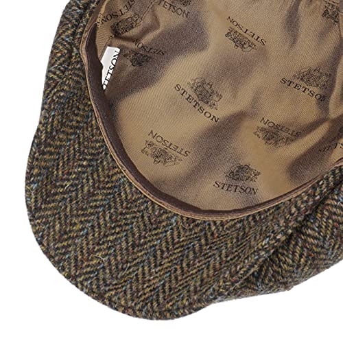 Stetson Coppola Hatteras New Harris Tweed Uomo - Made in Germany Cappellino Lana Berretto Newsboy con Visiera, Fodera Autunno/Inverno - 63 cm Marrone