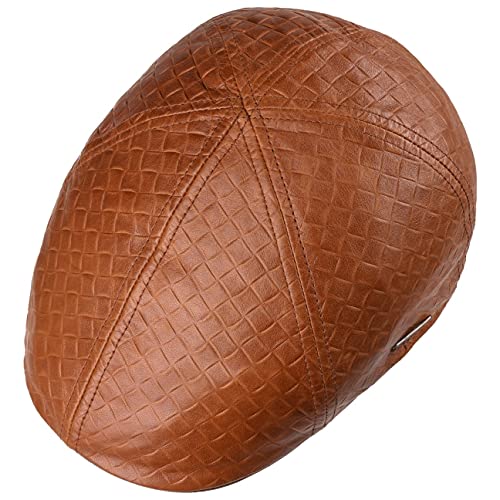 Stetson Coppola Texas Embossed Lambskin Uomo - Made in The EU Berretto Pelle Cappello Piatto con Visiera, Fodera Estate/Inverno - L (58-59 cm) Marrone