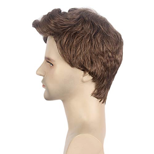 STfantasy Parrucca da Uomo Marrone Corta Ricci Ondulati Capelli Naturali Sintetici Quotidiano Costume Cosplay Partito Elegante Capelli