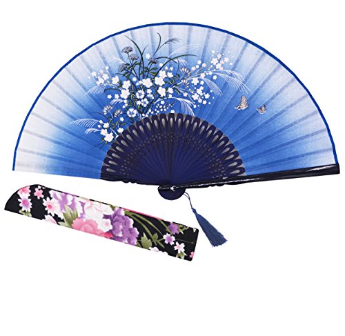 Sthuahe, ventaglio da donna, classico, in seta, dipinto a mano, pieghevole, ventaglio cinese/giapponese con ritagli, 21 cm, Blue