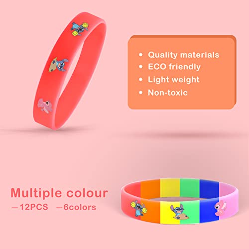 Lilo Sti-tch Braccialetti in Silicone per Feste per Bambini,12 Pezzi Braccialetti in Gomma Sportivi Colorati, Braccialetti per Bambini, per Adulti Forniture per Feste di Compleanno per Bambini