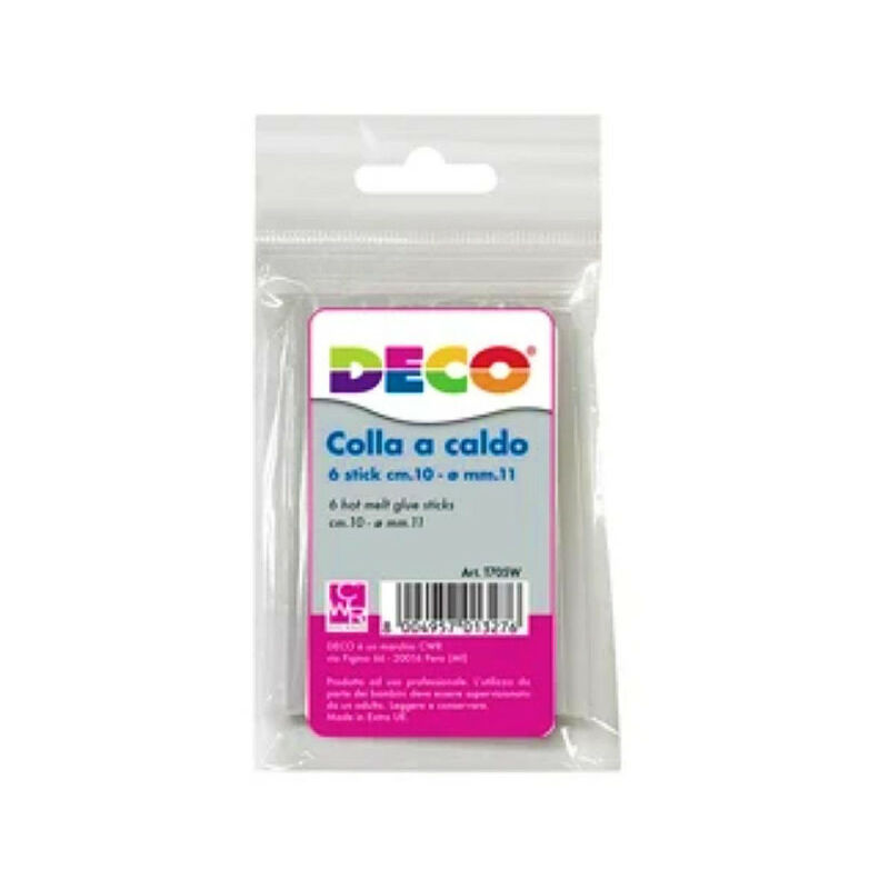 Stick colla a caldo Ideale per rapidi incollaggi di legno, cartone, stoffe, feltro e laddove non sia richiesta precisione ma rapidita'. Controindicata per metalli, ceramica, vetro e materiali poco porosi e con conducibilita' termica. Trova largo impiego nel bricolage, diametro 11mm blister da 6 pezzi.