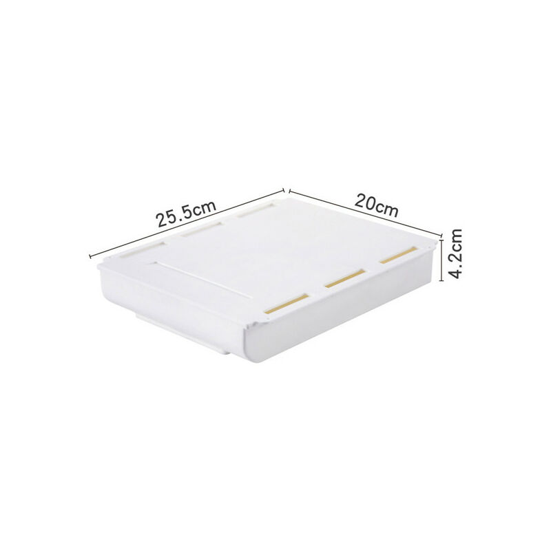 Vassoio portamatite autoadesivo tavolo da scrivania cassetto portaoggetti scatola Organizer sotto il supporto da scrivania Punto di Vendita del prodotto: Nascosta di immagazzinaggio di disegno. Archiviazione invisibile posizionata nella parte inferiore della scrivania, non occupa lo spazio del desktop. Non è visibile nella tua linea di vista che ti offre un sicuro grado di privacy per proteggere i tuoi articoli. Grande capacità di stoccaggio. Il cassetto sotto il tavolo è ideale per mantenere penne, righelli, bussole, asciugamani di carta, forbici, telefoni cellulari e altro. Materiale di alta qualità. È realizzato in plastica ABS ecologica e resistente senza piombo. È robusto e resistente all'usura per l'apertura e la chiusura ripetitive quotidiane. Comodo e facile da installare. È dotato di una superficie di colla autoadesiva per la protezione dell'ambiente, l'installazione è molto semplice e conveniente. Puoi scegliere la posizione più comoda per montarlo su un piano liscio.
