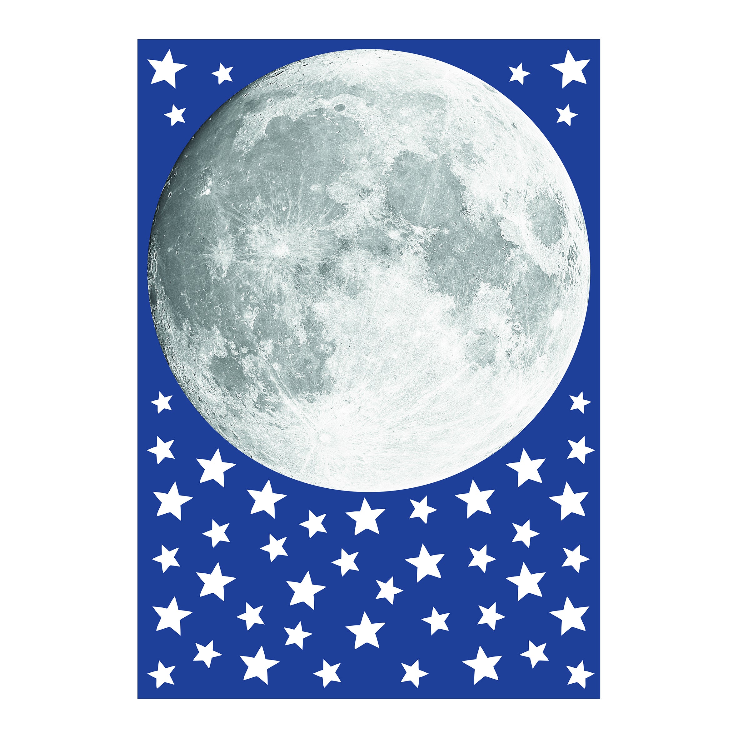 Decorazione adesiva fosforescente per camerette. Una grande luna si illumina al buio.Questa decorazione fosforescente è facile da applicare così come da rimuovere. Può essere applicata su pareti o su qualunque altra superficie liscia e pulita. E' realizzata in Vinile senza ftalati non tossico e adesivo acrilico a base d'acqua. La decorazione brilla al buio se precedentemente esposta a luce artificiale.