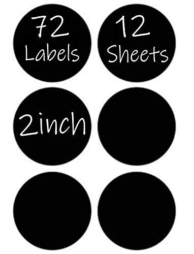 Tile & Sticker 72 Round Chalkboard Mason Jar Lid Canning Labels for Food Storage, Pantry, Spice Jars & Freezer! Waterproof Black Vinyl Chalkboard Stickers are Ideal for Chalk Markers (1.9 Inches Wide)