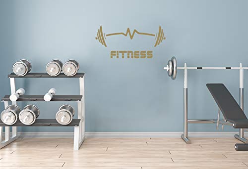 StickerDeen | Fitness Pesi battito cardiaco esercizio bilancieri muscolari motivazionali sport club palestra stile decorazione parete rimovibile adesivo vinile adesivo regalo | (grande) (oro)