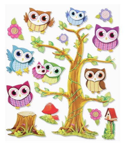 Stickerkoenig Adesivo da parete 3D per cameretta dei bambini, XXL - bel motivo con gufi e albero, Set III