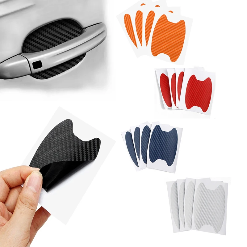 4pcs Car door Stickers Carbon Fiber Anti-scratch Cover Stickers Car Stickers Handlebar Protective Film Appearance Auto Parts