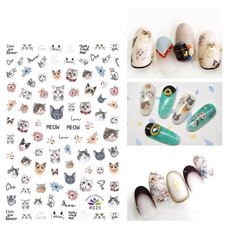 3D Stickers for Nails Self-adhesive Design Cartoons Cat Flowers Nail Art Decorations Decals Foil Wrap Manicure Accessories