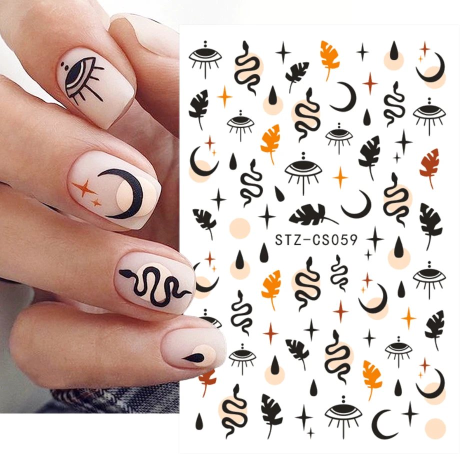 1pcs Boho Nail Stickers Snake Smile Maple Leaves Laque Sliders Fall Nail Art Decoration Adhesive Decals Manicures LASTZCS059