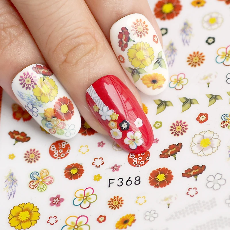 1pcs 3D Nail Stickers Spring Festival Flowers Tips Nails Adhesive Decals Breeze Style Designs Manicure Decoration