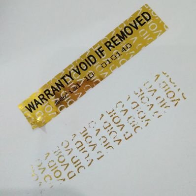 ► 100 pezzi di etichette misura 10mm x 50mm che lasciano la scritta "VOID" una volta rimosse,ogni etichetta ha un numero seriale. Le etichette sono di colore oro lucido, molto durevoli e impermeabili.