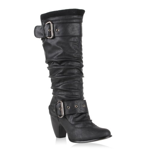 Stiefelparadies Donna Stivali Classici Foderata caldamente Maglia Fibbie