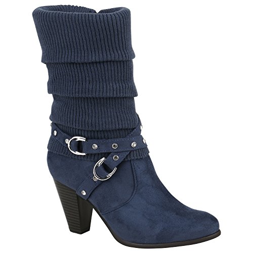 Stiefelparadies Donna Stivali Classici Foderata Risvolto Strass
