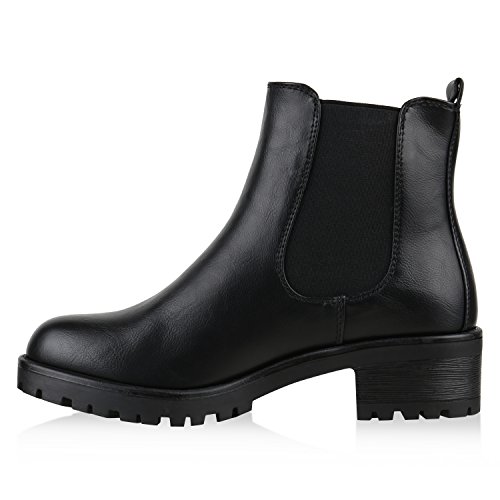 Stiefelparadies - Stivaletti da donna Chelsea con tacco a blocco, suola profilata, plateau anteriore, Flandell, Nero (Nero ), 36 EU