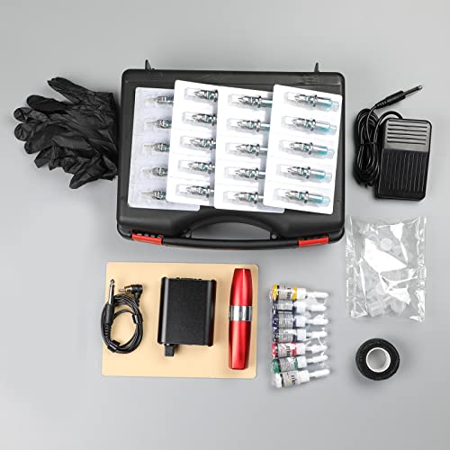 Stigma Tattoo Pen Machine Kit Rotary Tattoo Set completo con 20 pezzi di cartucce aghi Alimentatore Inchiostro per tatuaggi Kit per tatuaggi con scatola di plastica per principianti e tatuatori