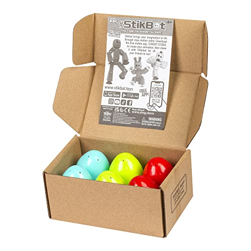 Zing Stikbot,Set di 6 ciechi pasquali, set di 6 personaggi da collezione Mystery Color Stikbot, include 2 Stikbot, 2 coniglietti e 2 polli, per creare video di animazione Stop Motion (colori casuali)