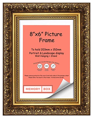 Stile Barocco Francese Ornato spazzato Stile Antico Cornice per Immagini/Foto/Poster con Foglio in Perspex - 8x6 Pollici - Oro