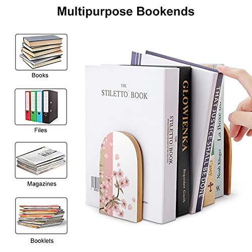 Stile giapponese romantico petali di fiori di ciliegio vento di primavera natura orientale 2 pezzi di tronchi di legno pesante fermalibri moderni per adulti,bambini,scaffali per libri,ufficio,scuola e