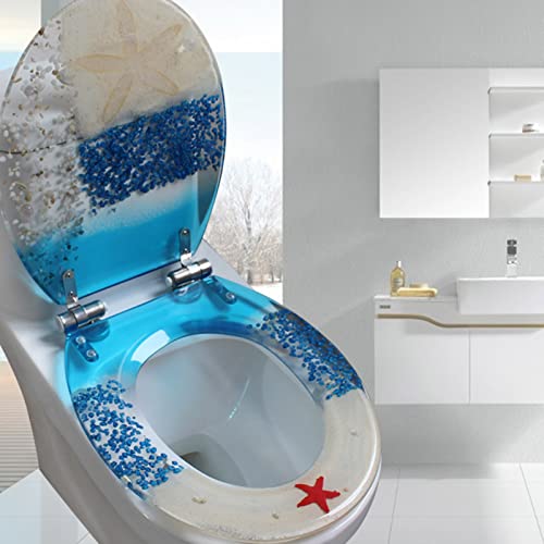 Stile Oceano Coperchio Water Universali Blu, Asse WC Colorato Con Disegni Mare, Materiale in Resina, Copriwater Ideal Standard Funzione Di Sgancio Rapido (Color: A)