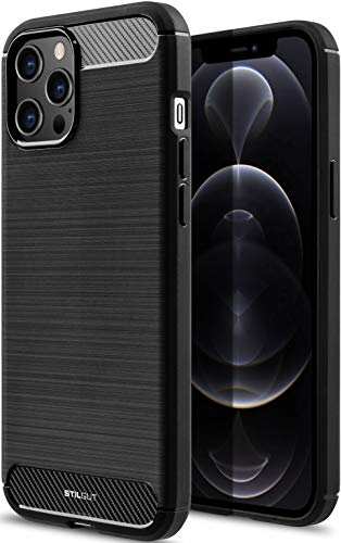 StilGut Carbon compatibile con iPhone 12 & iPhone 12 Pro (6.1") cover TPU design carbonio, custodia TPU assorbi urti - nero