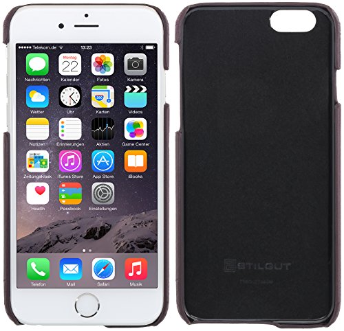 StilGut Cover Case, custodia in vera pelle con tasca per carte per Apple iPhone 6s (4.7“), Porpora lava