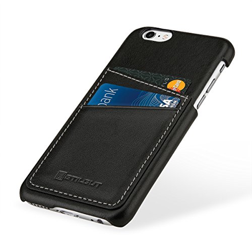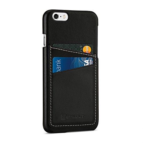 StilGut Cover Case, Custodia in Vera Pelle con Tasca per Carte per iPhone 6s (4.7“), Nero Nappa