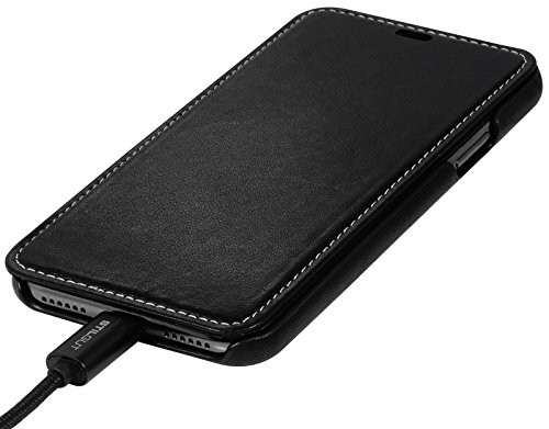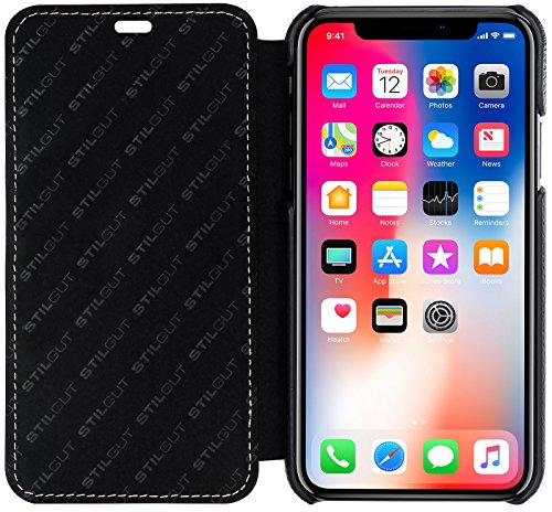 StilGut Custodia per Apple iPhone X/iPhone XS a Libro in Pelle, Nero Nappa