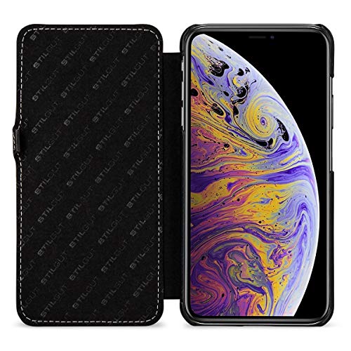 StilGut custodia compatibile con Apple iPhone XS Max cover in pelle a libro, nero nappa con clip