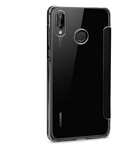 StilGut Custodia Compatibile con Huawei P20 Lite Cover NFC/RFID Blocker in plastica Trasparente con Patta in Pelle Nappa. Nero/Trasparente