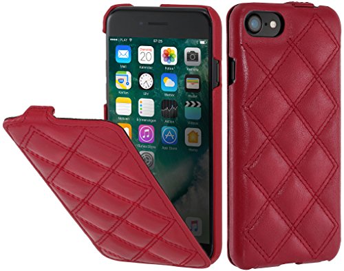 StilGut Custodia Compatibile con iPhone 7, iPhone 8, iPhone SE 2020 Cover flipcase Verticale in Pelle con Chiusura a Clip, Rosso Nappa - Carato
